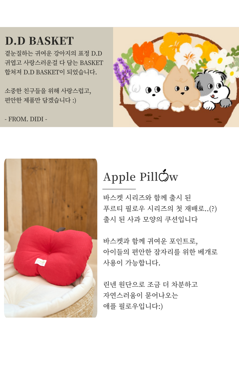 바스켓 시리즈와 함꼐하는 푸르티 시리즈의 첫번쨰 수확(?)인 애플 필로우입니다:)